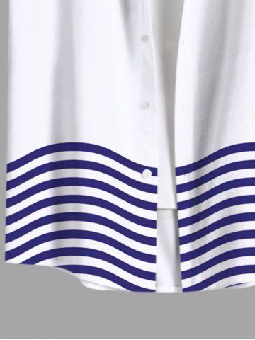 Plus Size Sea Waves Anchor Ship Rudder Tassel Cruise Print Buttons Pocket Hawaii Shirt For Men - White - S