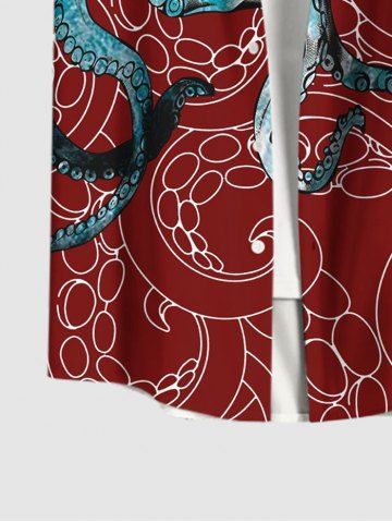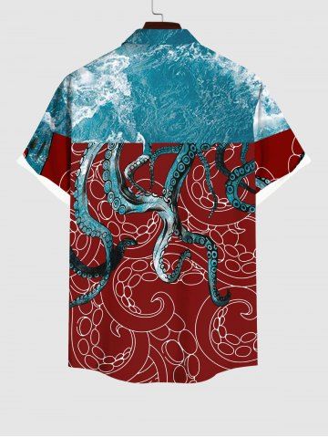 Short Sleeves Shirts > Plus Size Sea Waves Octopus Colorblock Print Buttons Pocket Shirt For Men