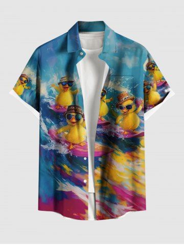 Short Sleeves Shirts > Plus Size Sea Waves Surfing Ducks Print Buttons Pocket Hawaii Shirt For Men