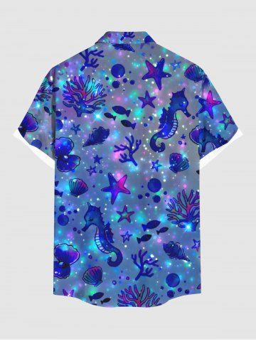 Short Sleeves Shirts > Plus Size Seahorse Coral Starfish Fish Shell Glitter Ombre Seabed Print Hawaii Sea Creatures Shirt For Men