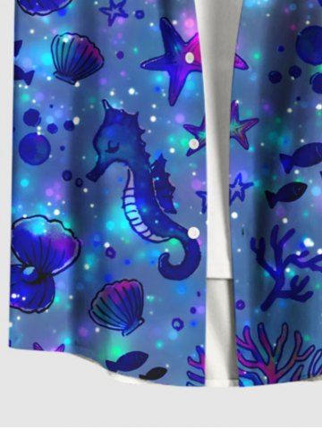 Plus Size Seahorse Coral Starfish Fish Shell Glitter Ombre Seabed Print Hawaii Sea Creatures Shirt For Men - Blue - 4xl