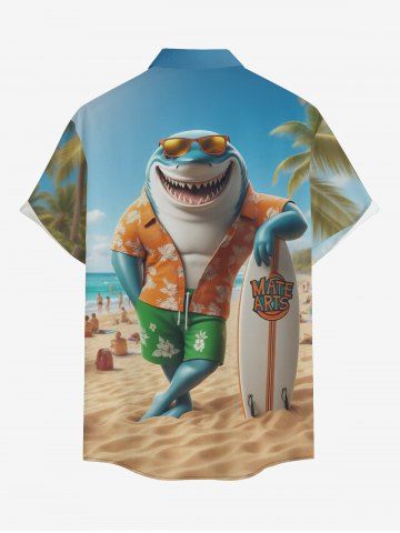 Short Sleeves Shirts > Plus Size Shark Coconut Tree Beach Seascape Print Buttons Pocket Hawaii Shirt For Men