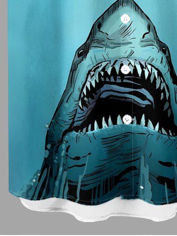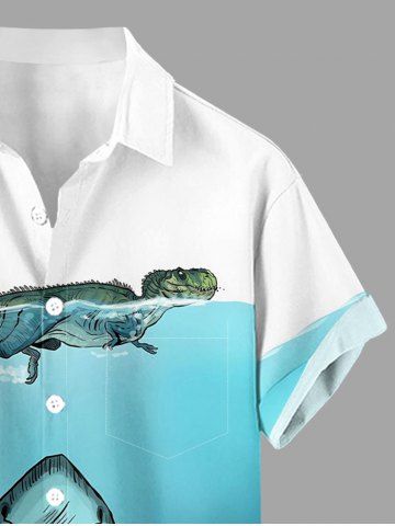 Plus Size Shark Dinosaur Sea Print Hawaii Button Pocket Shirt For Men - Lake Blue - M