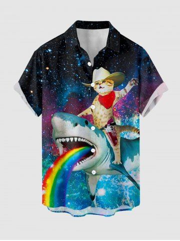 Short Sleeves Shirts > Plus Size Shark Rainbow Cat Sea Galaxy Print Hawaii Button Pocket Shirt For Men