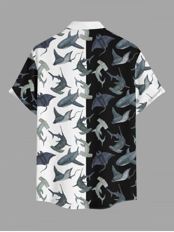 Plus Size Sharks Colorblock Print Buttons Pocket Hawaii Shirt For Men - Black - M