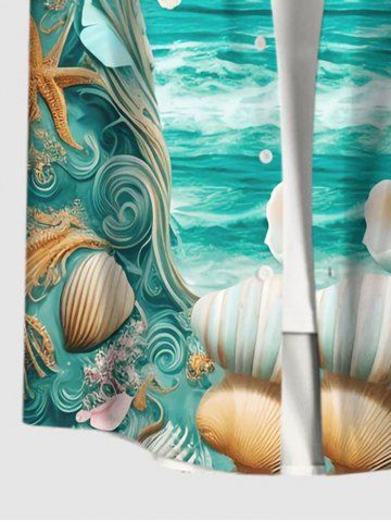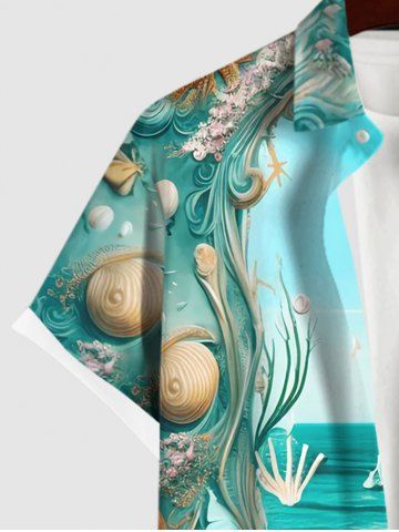 Plus Size Shell Conch Sea Portal Print Ombre Hawaii Button Pocket Shirt For Men - Multi-a - L