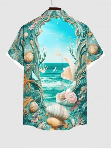 Short Sleeves Shirts > Plus Size Shell Conch Sea Portal Print Ombre Hawaii Button Pocket Shirt For Men