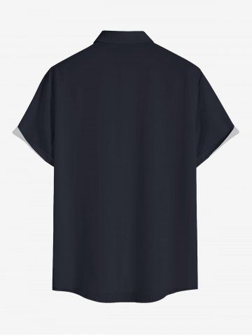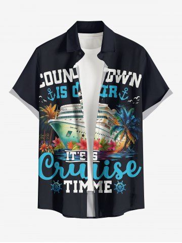 Plus Size Ship Coconut Tree Flower Print Buttons Pocket Hawaii Shirt For Men - Black - S