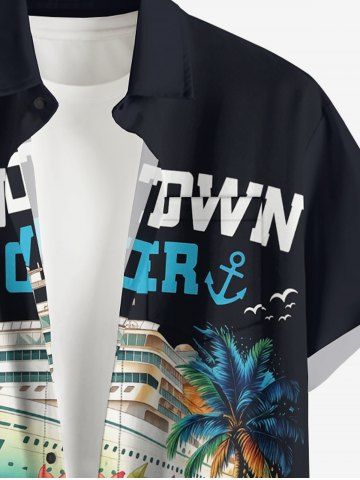 Plus Size Ship Coconut Tree Flower Print Buttons Pocket Hawaii Shirt For Men - Black - 4xl