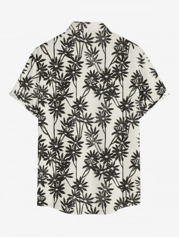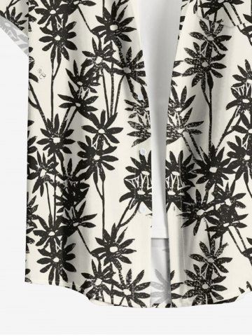 Plus Size Silhouette Flower Print Hawaii Button Pocket Shirt For Men - Beige - L
