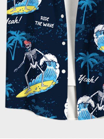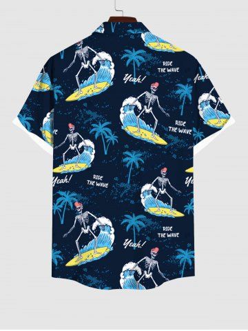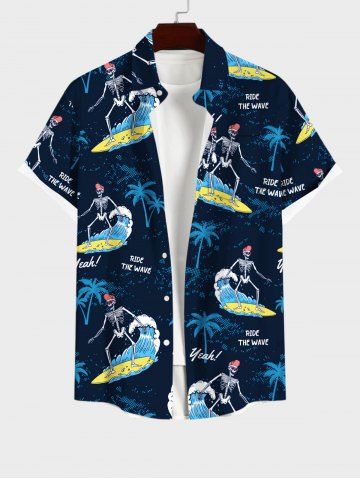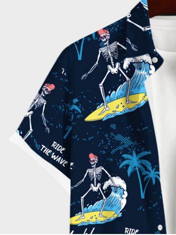 Short Sleeves Shirts > Plus Size Skeleton Surfer Coconut Tree Letters Print Hawaii Button Pocket Shirt For Men