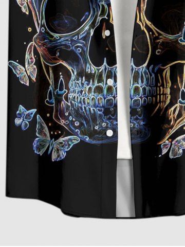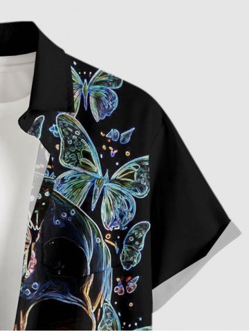 Plus Size Skull Butterfly Print Buttons Pocket Hawaii Shirt For Men - Black - 6xl
