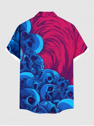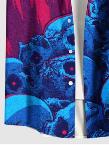 Plus Size Skull Cave Print Halloween Button Pocket Shirt For Men - Red - L