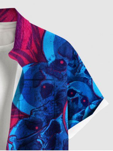 Plus Size Skull Cave Print Halloween Button Pocket Shirt For Men - Red - 6xl