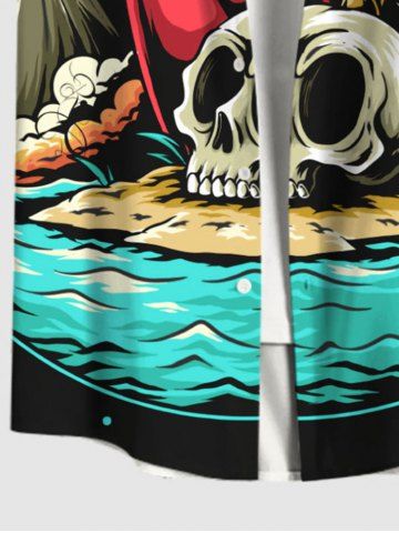 Short Sleeves Shirts > Plus Size Skull Coconut Tree Sea Beach Print Hawaii Button Pocket Shirt For Men