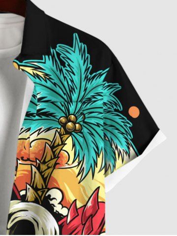 Plus Size Skull Coconut Tree Sea Beach Print Hawaii Button Pocket Shirt For Men - Black - 2xl
