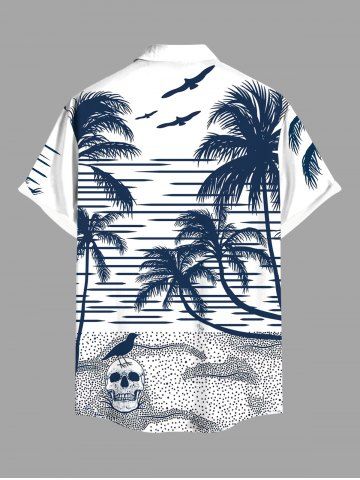 Plus Size Skull Coconut Tree Sea Waves Crow Print Buttons Pocket Hawaii Shirt For Men - White - S