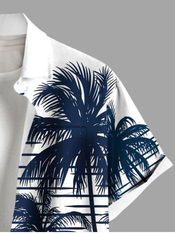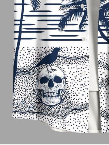 Plus Size Skull Coconut Tree Sea Waves Crow Print Buttons Pocket Hawaii Shirt For Men - White - 5xl