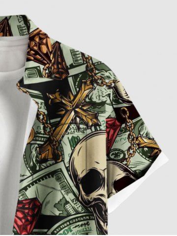 Short Sleeves Shirts > Plus Size Skull Dollar Diamond Print Buttons Pocket Shirt For Men
