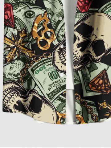 Plus Size Skull Dollar Diamond Print Buttons Pocket Shirt For Men - Black - 6xl