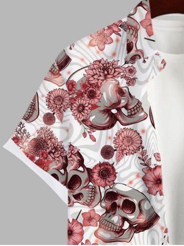 Plus Size Skull Floral Striped Print Hawaii Button Pocket Shirt For Men - Multi-a - 4xl