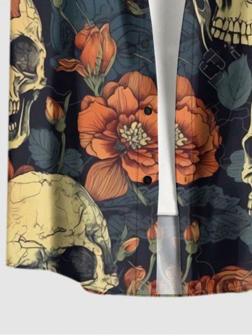 Plus Size Skull Flower Leaf Print Buttons Pocket Hawaii Shirt For Men - Deep Blue - 6xl