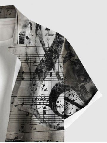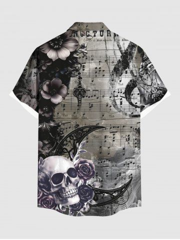 Plus Size Skull Flower Moon Music Symbol Print Ombre Button Pocket Shirt For Men - Dark Gray - 5xl