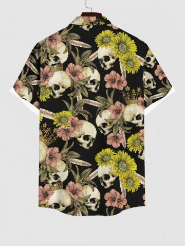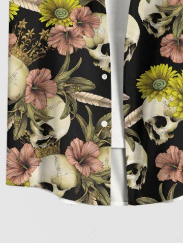Plus Size Skull Flower Print Hawaii Button Pocket Shirt For Men - Multi-a - 4xl