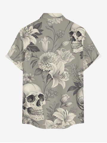 Plus Size Skull Flowers Leaf Print Buttons Pocket Hawaii Shirt For Men - Light Gray - 6xl
