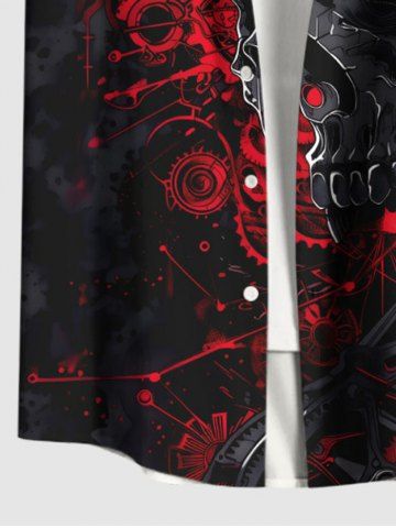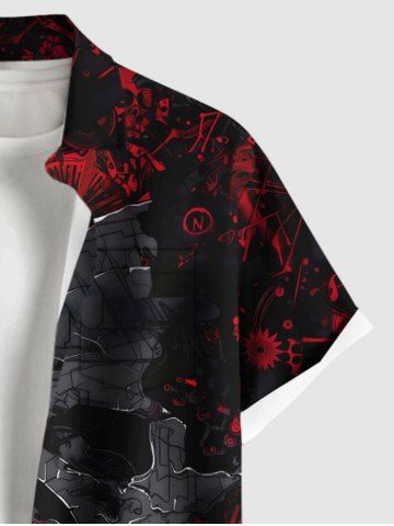 Plus Size Skull Galaxy Sun Print Buttons Pocket Hawaii Shirt For Men - Black - 4xl