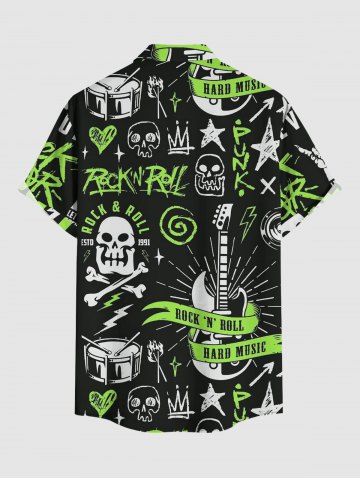 Plus Size Skull Guitar Print Hawaii Rock and Roll Button Pocket Shirt For Men - Green - M