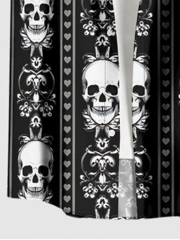 Plus Size Skull Heart Striped Print Button Pocket Shirt For Men - Black - M