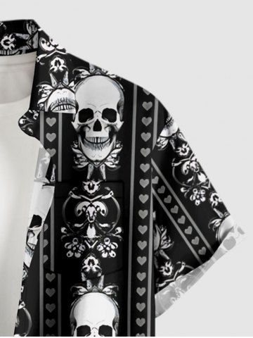 Short Sleeves Shirts > Plus Size Skull Heart Striped Print Button Pocket Shirt For Men