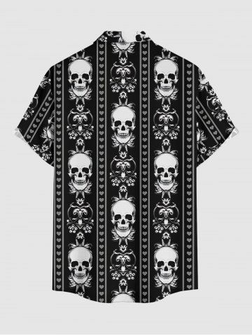 Plus Size Skull Heart Striped Print Button Pocket Shirt For Men - Black - 3xl