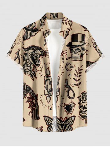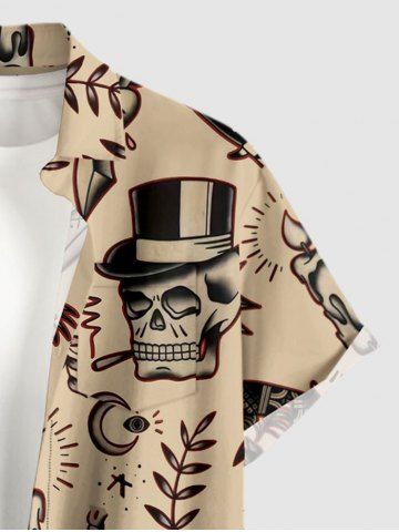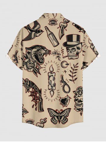 Plus Size Skull Leopard Bird Candle Ring Print Buttons Pocket Hawaii Shirt For Men - Tan - 3xl