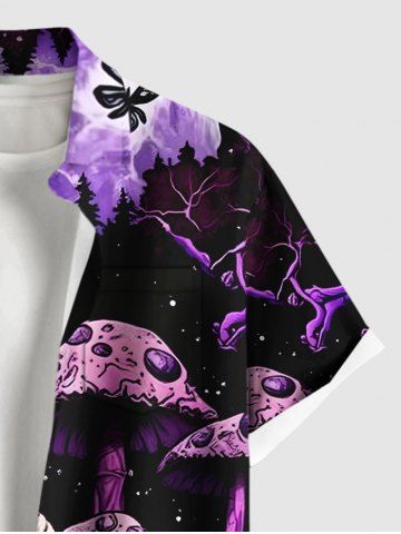 Short Sleeves Shirts > Plus Size Skull Mushroom Tree Forest Butterfly Galaxy Print Hawaii Button Pocket Shirt For Men