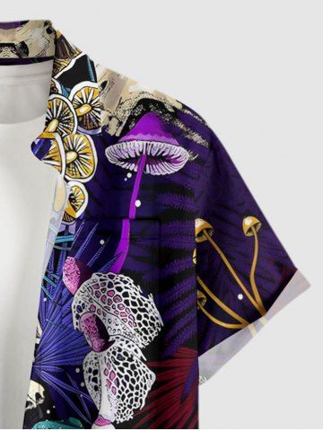 Plus Size Skull Mushroom Tropical Leaf Print Hawaii Buttons Pocket Shirt For Men - Purple - S