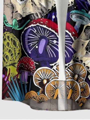 Plus Size Skull Mushroom Tropical Leaf Print Hawaii Buttons Pocket Shirt For Men - Purple - L