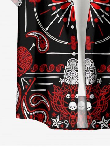 Plus Size Skull Paisley Scarf Graphic Print Button Pocket Shirt For Men - Red - S