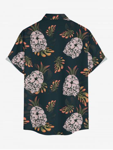 Plus Size Skull Pineapple Tropical Leaf Print Buttons Pocket Hawaii Shirt For Men - Deep Green - M