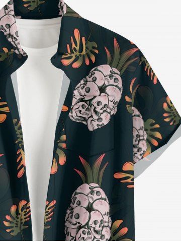 Short Sleeves Shirts > Plus Size Skull Pineapple Tropical Leaf Print Buttons Pocket Hawaii Shirt For Men