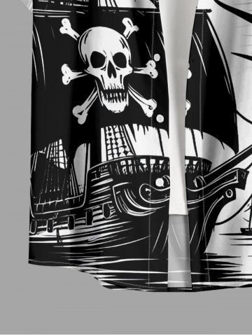 Plus Size Skull Pirate Sailboat Bird Print Hawaii Cruise Button Pocket Shirt For Men - White - 5xl
