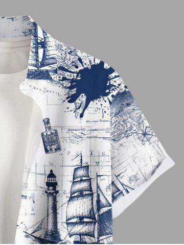 Plus Size Skull Pirate Ship Rudder Map Cruise Print Buttons Pocket Hawaii Shirt For Men - Blue - Xl