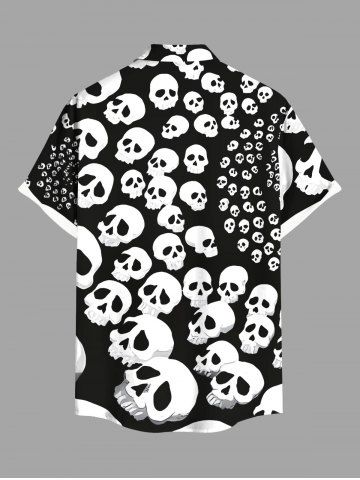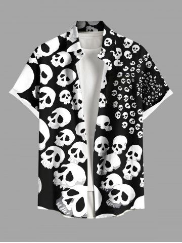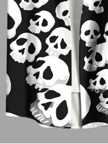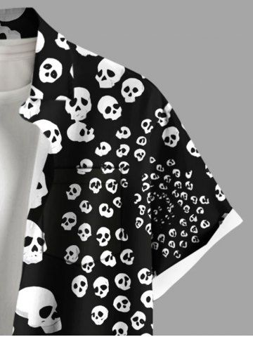 Plus Size Skull Print Halloween Button Pocket Shirt For Men - Black - 2xl