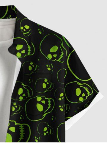 Plus Size Skull Print Halloween Button Pocket Shirt For Men - Black - Xl