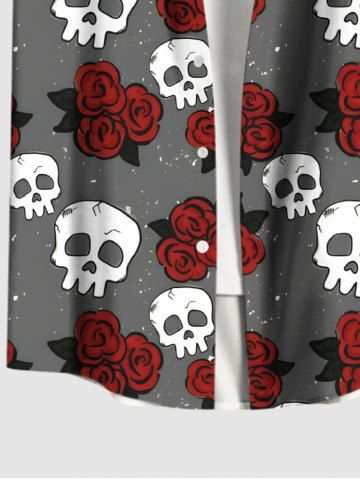 Plus Size Skull Rose Flower Galaxy Print Hawaii Button Pocket Shirt For Men - Gray - 6xl