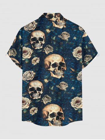Plus Size Skull Rose Flower Print Buttons Pocket Hawaii Shirt For Men - Cadetblue - 5xl