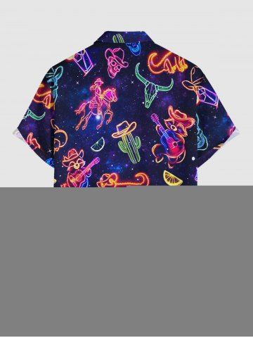 Plus Size Skull Skeleton Fruit Juice Animal Guitar Print Buttons Pocket Hawaii Shirt For Men - Black - M
