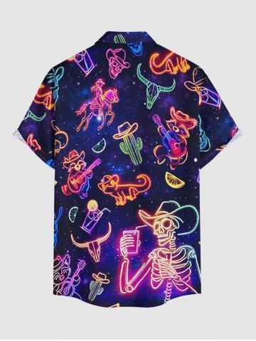 Plus Size Skull Skeleton Fruit Juice Animal Guitar Print Buttons Pocket Hawaii Shirt For Men - Black - 5xl