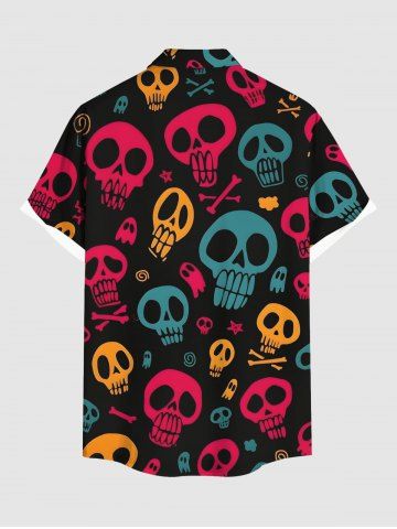 Plus Size Skull Star Bone Print Halloween Button Pocket Shirt For Men - Black - S